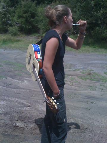 Dort ist der Strand mit einer dicken Schicht fein abgeschliffener runder Steine uebersaet, nur hin und wieder unterbrochen von wunderschoenem hoelzernen Treibgut, das dort wie in einer Kunstausstellung rumliegt. Das Beste aber sind die Wellen, die dort so spektakulaer branden, wie wir es noch nie gesehen haben. Man kann fast bis zu der Stelle ins Wasser gehen, wo sie oft einen halben Meter hoch brechen. Jede zehnte Welle aber baeumt sich vor dir ploetzlich ca. zweieinhalb Meter hoch auf und wird nur durch das zuruecklaufende Wasser eingebremst und von dir zurueckgehalten...meistens zumindest :-)